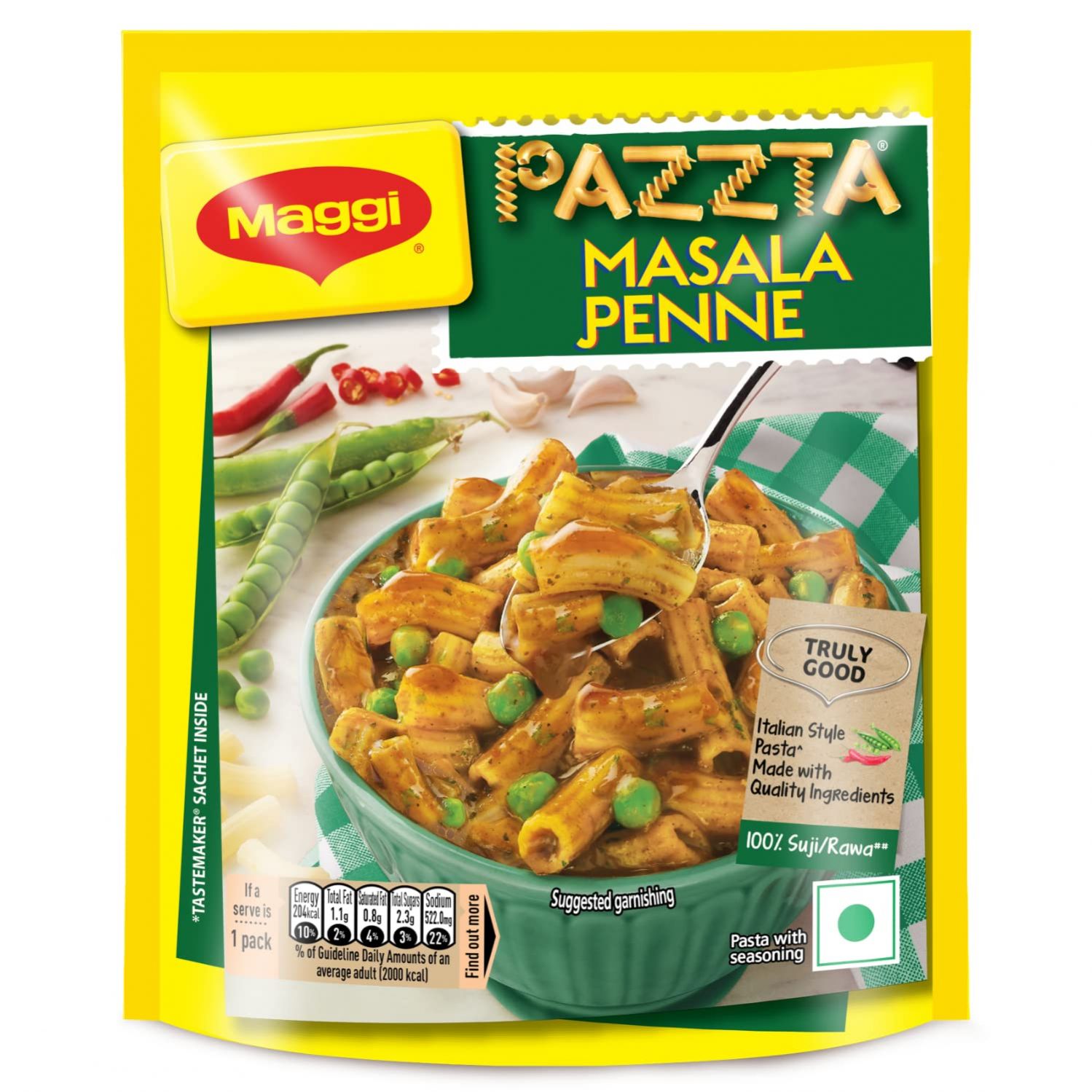 MAGGI Masala Penne Pazzta is delicious, quick and easy. The pasta is made with 100% suji/ rawa (semolina) and is ready in just 5 minutes! It makes a great snacking option or sides for your everyday meals.